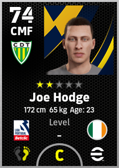 . Joe Hodge is a Center Midfielder footballer from Republic Of Ireland who plays for Cd Tondela in eFootball 2026.
