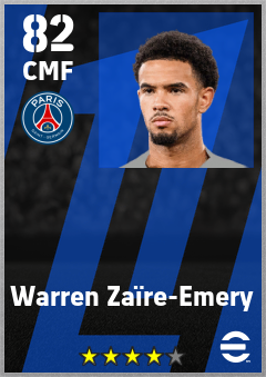 . Warren Zaïre-Emery is a Center Midfielder footballer from France who plays for Paris Saint-Germain in eFootball 2026.