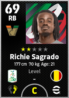 . Richie Sagrado is a Right Back footballer from Belgium who plays for Venezia Anv in eFootball 2026.