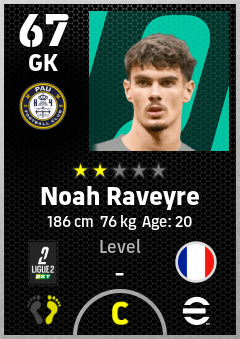 . Noah Raveyre is a Goalkeeper footballer from France who plays for Pau Fc in eFootball 2026.