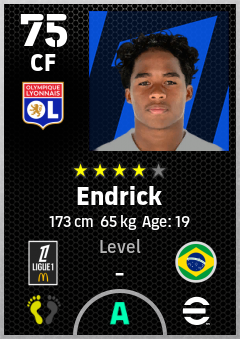 . Endrick is a Center Forward footballer from Brazil who plays for Olympique Lyonnais in eFootball 2026.