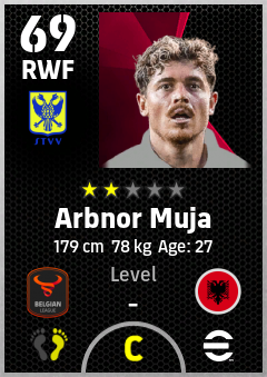 . Arbnor Muja is a Right Wing Forward footballer from Albania who plays for Sint-Truiden Gb in eFootball 2026.