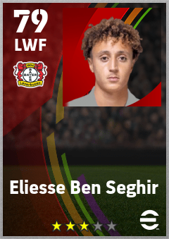 . Eliesse Ben Seghir is a Left Wing Forward footballer from Morocco who plays for Bayer 04 Leverkusen in eFootball 2026.