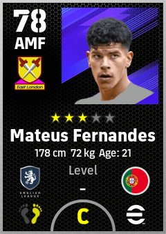 . Mateus Fernandes is a Attacking Midfielder footballer from Portugal who plays for West Ham Rb in eFootball 2026.