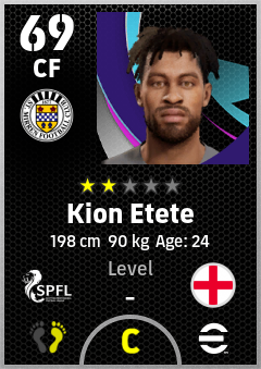. Kion Etete is a Center Forward footballer from England who plays for St. Mirren Fc in eFootball 2026.