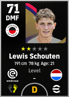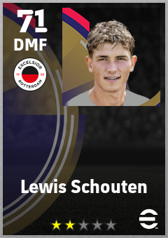 . Lewis Schouten is a Defensive Midfielder footballer from Netherlands who plays for Excelsior Rotterdam in eFootball 2026.