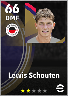 . Lewis Schouten is a Defensive Midfielder footballer from Netherlands who plays for Excelsior Rotterdam in eFootball 2026.
