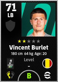 . Vincent Burlet is a Left Back footballer from Belgium who plays for Us Boulogne Co in eFootball 2026.