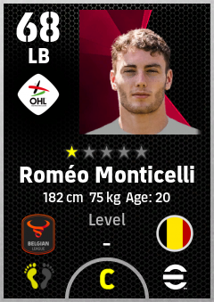 . Roméo Monticelli is a Left Back footballer from Belgium who plays for Leuven Wzrg in eFootball 2026.