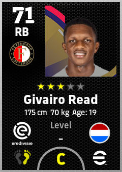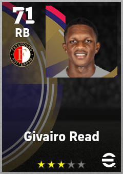. Givairo Read is a Right Back footballer from Netherlands who plays for Feyenoord in eFootball 2026.