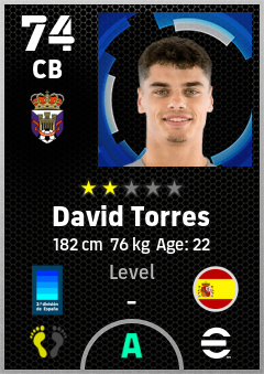 . David Torres is a Center Back footballer from Spain who plays for Valladolid Mb in eFootball 2026.