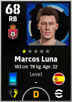 . Marcos Luna is a Right Back footballer from Spain who plays for Almería Rb in eFootball 2026.