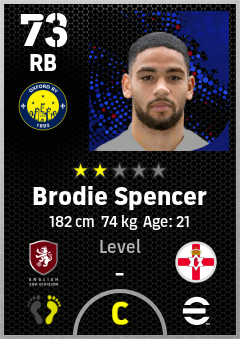 . Brodie Spencer is a Right Back footballer from Northern Ireland who plays for Oxford By in eFootball 2026.
