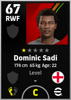 . Dominic Sadi is a Right Wing Forward footballer from England who plays for Free in eFootball 2026.