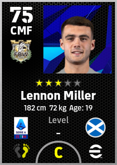 . Lennon Miller is a Center Midfielder footballer from Scotland who plays for Udinese Calcio in eFootball 2026.