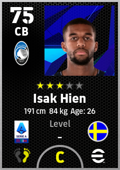 . Isak Hien is a Center Back footballer from Sweden who plays for Atalanta Bc in eFootball 2026.