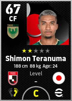. Shimon Teranuma is a Center Forward footballer from Japan who plays for Tokyo Verdy in eFootball 2026.