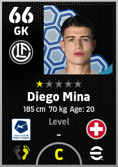 . Diego Mina is a Goalkeeper footballer from Switzerland who plays for Lugano Sw in eFootball 2026.