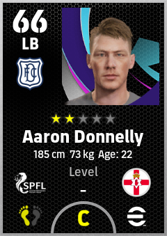. Aaron Donnelly is a Left Back footballer from Northern Ireland who plays for Dundee Fc in eFootball 2026.