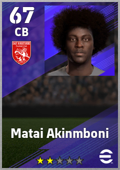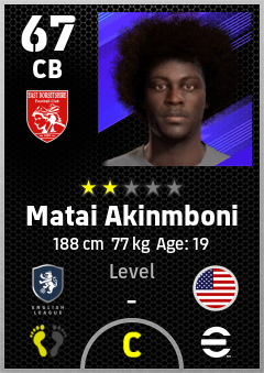 . Matai Akinmboni is a Center Back footballer from United States who plays for Bournemouth Rb in eFootball 2026.
