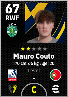 . Mauro Couto is a Right Wing Forward footballer from Portugal who plays for Sporting Cp in eFootball 2026.