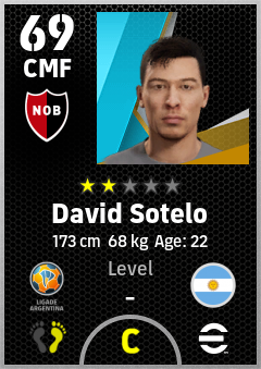 . David Sotelo is a Center Midfielder footballer from Argentina who plays for Rosario Rn in eFootball 2026.