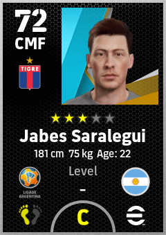 . Jabes Saralegui is a Center Midfielder footballer from Argentina who plays for Victoria Ar in eFootball 2026.