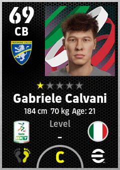 . Gabriele Calvani is a Center Back footballer from Italy who plays for Frosinone Ga in eFootball 2026.