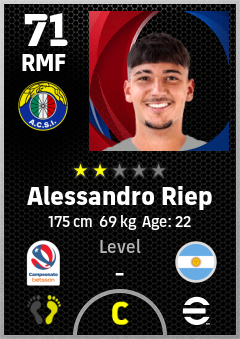 . Alessandro Riep is a Right Midfielder footballer from Argentina who plays for Santiago Vb in eFootball 2026.