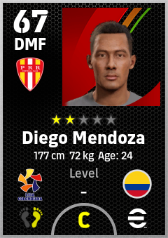 . Diego Mendoza is a Defensive Midfielder footballer from Colombia who plays for Pereira Ar in eFootball 2026.