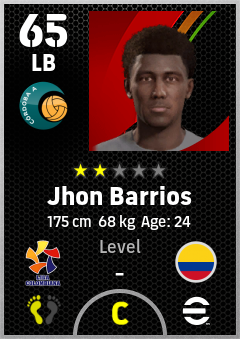 . Jhon Barrios is a Left Back footballer from Colombia who plays for Córdoba A in eFootball 2026.