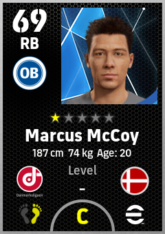 . Marcus Mccoy is a Right Back footballer from Denmark who plays for Odense Hb in eFootball 2026.