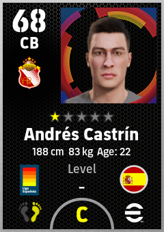 . Andrés Castrín is a Center Back footballer from Spain who plays for Sevilla Nervión Br in eFootball 2026.