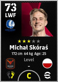 . Michał Skóraś is a Left Wing Forward footballer from Poland who plays for Gent Bw in eFootball 2026.