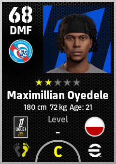 . Maximillian Oyedele is a Defensive Midfielder footballer from Poland who plays for Rc Strasbourg Alsace in eFootball 2026.