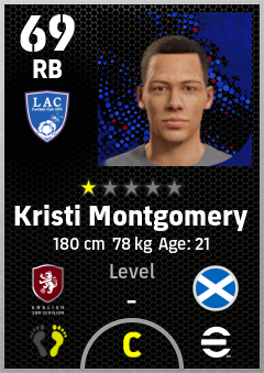 . Kristi Montgomery is a Right Back footballer from Scotland who plays for Blackburn Bw in eFootball 2026.