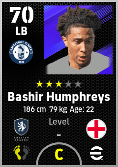 . Bashir Humphreys is a Left Back footballer from England who plays for Burnley Rb in eFootball 2026.