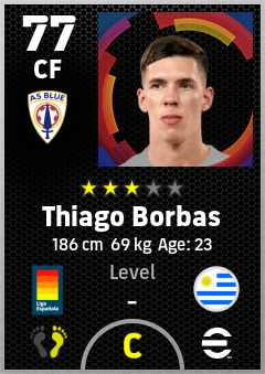 . Thiago Borbas is a Center Forward footballer from Uruguay who plays for Oviedo A in eFootball 2026.