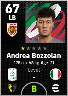 . Andrea Bozzolan is a Left Back footballer from Italy who plays for Reggio Emilia G in eFootball 2026.