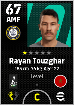 . Rayan Touzghar is a Attacking Midfielder footballer from Morocco who plays for Pau Fc in eFootball 2026.