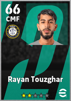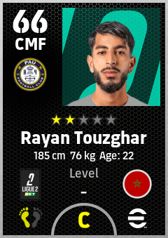 . Rayan Touzghar is a Center Midfielder footballer from Morocco who plays for Pau Fc in eFootball 2026.