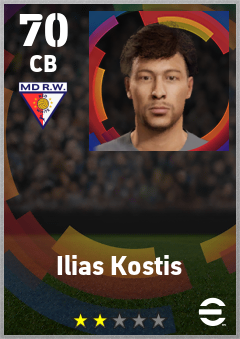 . Ilias Kostis is a Center Back footballer from Greece who plays for Madrid Rosas Rb in eFootball 2026.