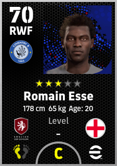 . Romain Esse is a Right Wing Forward footballer from England who plays for Coventry B in eFootball 2026.