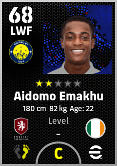 . Aidomo Emakhu is a Left Wing Forward footballer from Republic Of Ireland who plays for Oxford By in eFootball 2026.