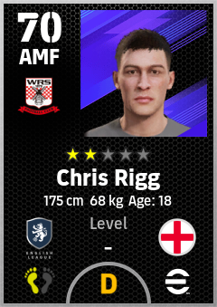 . Chris Rigg is a Attacking Midfielder footballer from England who plays for Sunderland Rwb in eFootball 2026.