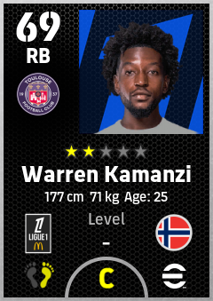 . Warren Kamanzi is a Right Back footballer from Norway who plays for Toulouse Fc in eFootball 2026.