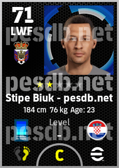 . Stipe Biuk is a Left Wing Forward footballer from Croatia who plays for Valladolid Mb in eFootball 2026.