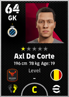 . Axl De Corte is a Goalkeeper footballer from Belgium who plays for Brugge Bz in eFootball 2026.