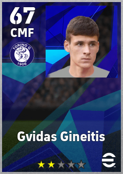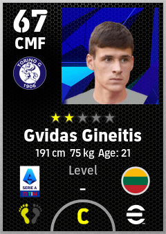 . Gvidas Gineitis is a Center Midfielder footballer from Lithuania who plays for Torino Fc in eFootball 2026.