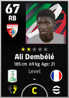 . Ali Dembélé is a Right Back footballer from France who plays for Mantova Br in eFootball 2026.